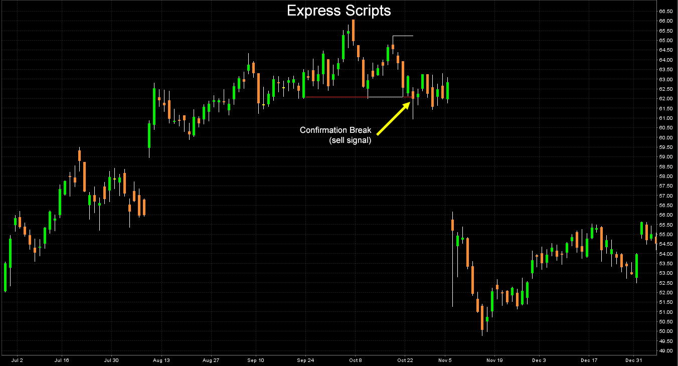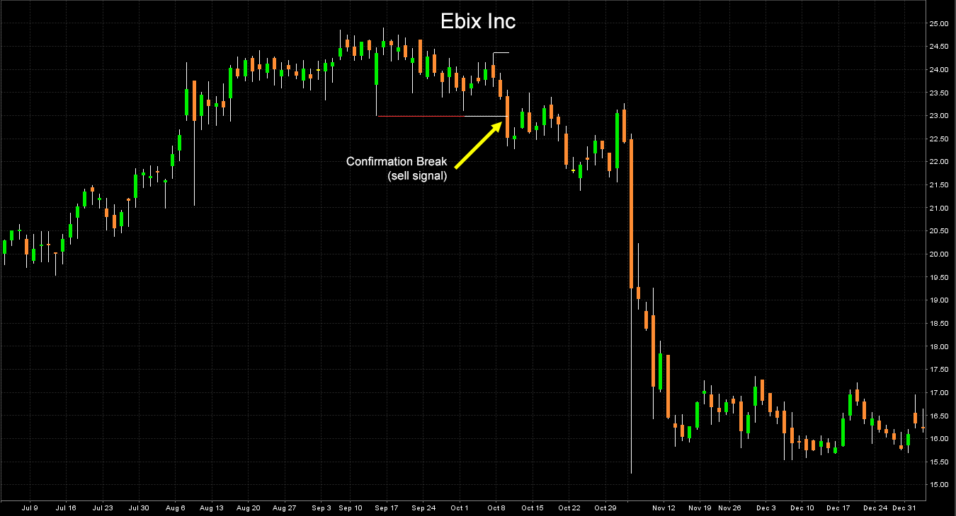 - A sell signal is generated when the price closes below the horizontal line post at least two bounces.