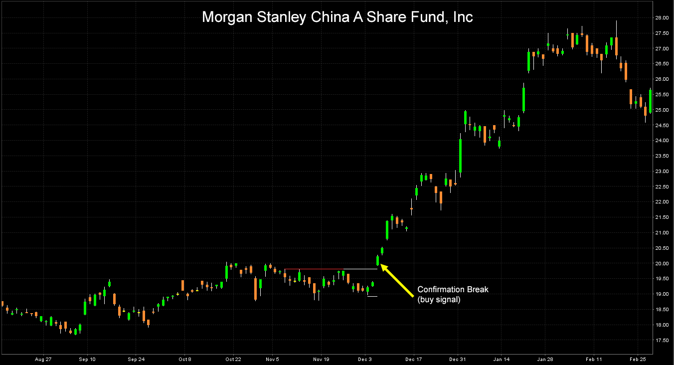 Here are 3 instances YardCharts has identified on Nasdaq and NYSE where this pattern led to significant gains post-breakout, without triggering the stop loss, showcasing at least a three-fold increase from the breakout point to the peak.